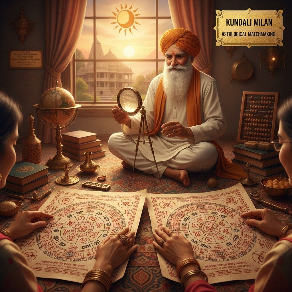 Kundali Milan, also known as Horoscope Matching or Gun Milan, is an essential part of Vedic astrology used to check the compatibility of two individuals before marriage. This detailed analysis helps understand how well the couple will adjust with each other emotionally, mentally, spiritually, and socially.